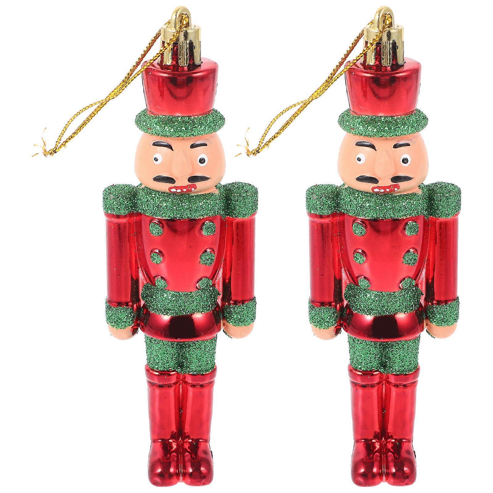 Hanging Nutcracker Puppets Plastic Ornaments Christmas Style Home Office Decoration Green 2Pcs