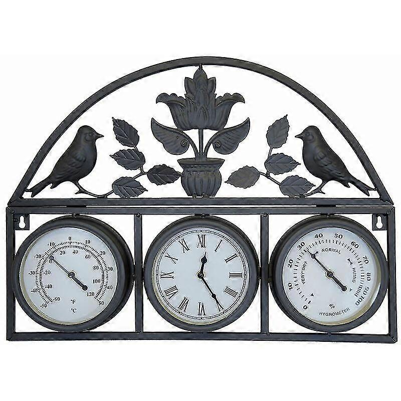 Shabby Chic Dark Grey Wall Clock With Thermometer & Hygrometer