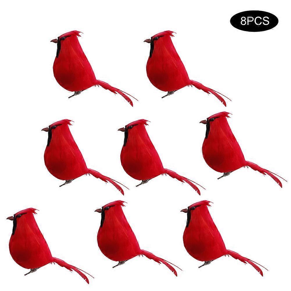Chubby Red Cardinal Clips 8pcs Christmas Tree Ornaments