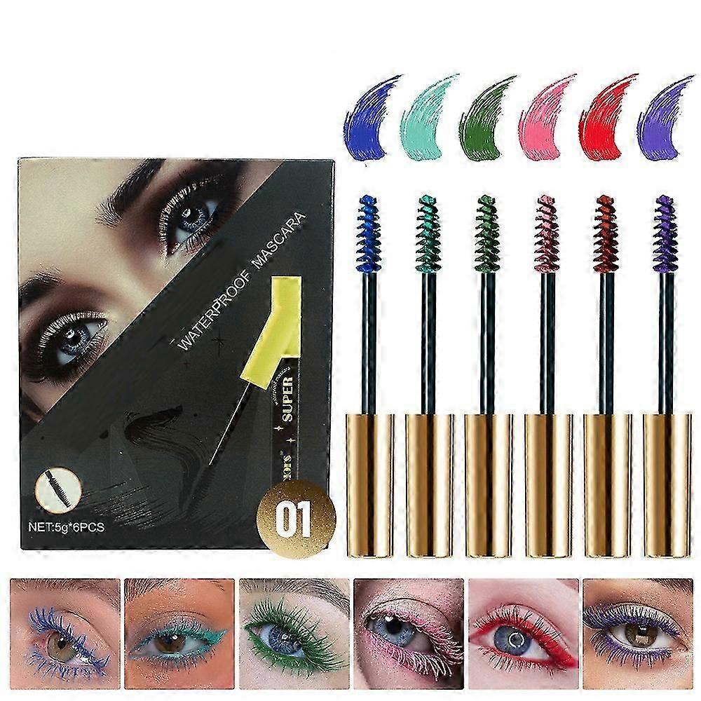 6 Colours Colored Mascara for Eyelashes Set Rainbow Purple Blue Mascara for Eyelashes, Waterproof Long Lasting Charming Volumizing, Eye Makeup Gift fo