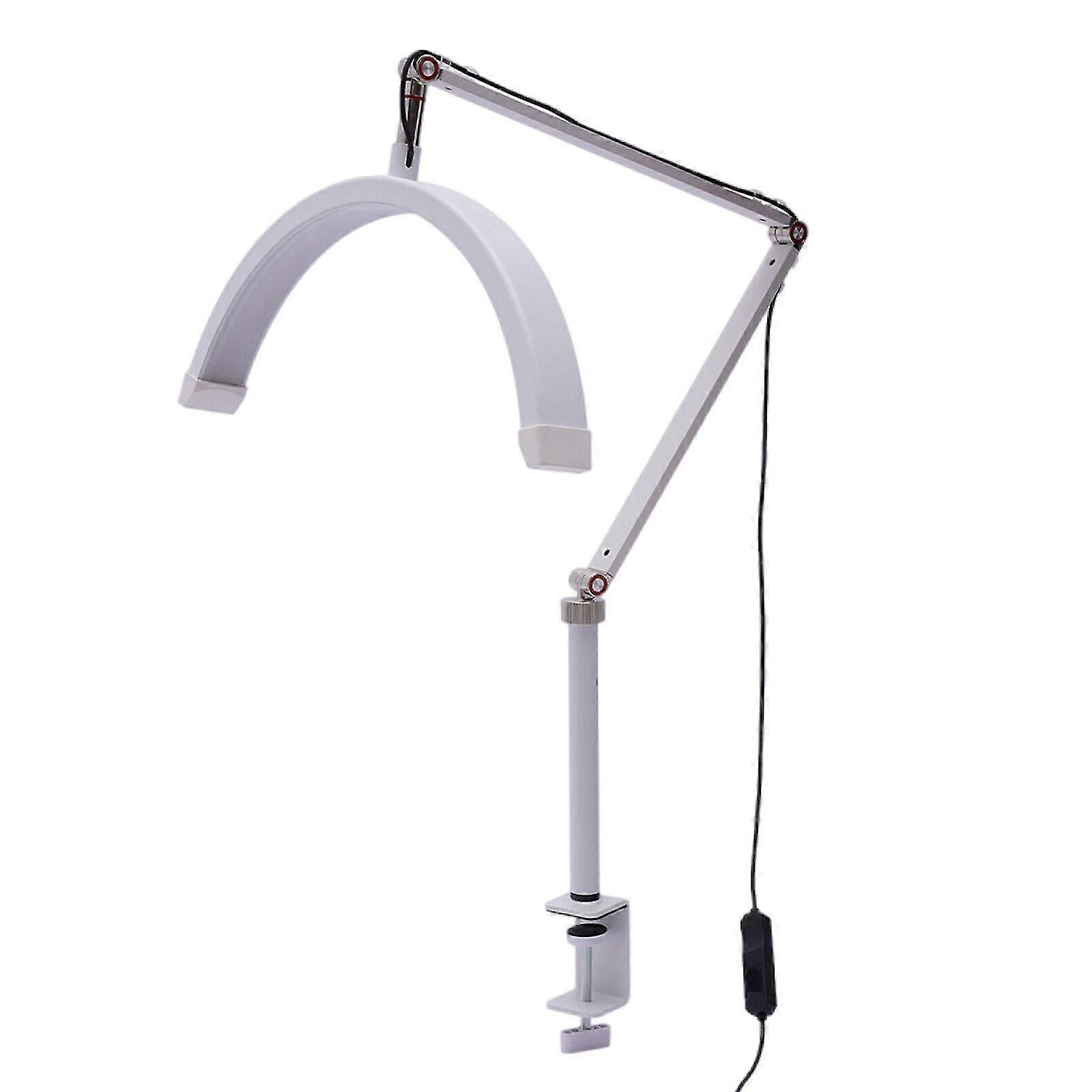 The beauty process cannot be separated from a powerful light. Your beauty will be lit by our light Made of high-quality iron, aluminum alloy, and PC, and using sandblasting and paint baking processes, our LED beauty moon light is more durable, and its height and brightness can be adjusted. The excellent LED light source not only provides convenience for you but also protects your eyes. With it, you have a powerful assistant. Key Features: Build to Last: High-quality aluminum alloy, PC, iron, paint baking, and sandblasting process make the product heat-resistant, impact-resistant, wear-resistant, corrosion-resistant, and solid, so it can better keep beautiful and practical for long time. Excellent Source:The LED light source with a luminous flux of 1800lumen, 180 lamp beads, a CRI 90, and three colors (warm light(3000K), mixed light(4500K), and white light(6000K)) is non-stroboscopic, eye-friendly, energy-saving, and provides you with more natural and brighter light. Adjustable and Rotatable: Through the controller and arm, you can adjust the brightness (10 gears: 10%-100%) and height (21.65inch) for manicure tables, high spa beds, and even tattoo chairs separately, and the product can also rotate 360 degrees to fully meet your different needs. Careful Design: The wide crescent shape eliminates shadows and dead spots, allowing you, as a tattooist, pmu, eyelash technician, facial therapist, or beautician, to clearly see the customer's situation and adopt more accurate methods. Convenient and Simple: Complete accessories, fixing line buckles, simple structure, convenient controller, and detailed instructions allow you to complete the installation and start your beauty journey in a short time Effortless Cleaning: The smooth surface makes it easy for you to clean the residue with water and a towel. Ideal Gift: The timeless white and unique crescent shape give the product a modern and minimalist feel, so it is an ideal gift for family, friends, and lovers engaged in beauty industries to make their work easier. Protective Packaging: The sponge can better protect your product during transportation so that it can be delivered to you completely Compact and Lightweight: With a weight of 3.09 lbs and an overall height of 24.2 inches, the product does not take up too much space and allows you to easily store and carry it to any workplace. Details: Solid Clip: It provides convenience for you to fix the product and adjust its position. Practical Lampshade: This lampshade has good light transmittance to restore the original brightness of LED lights and effectively prevents dust from entering the interior to reduce the difficulty of cleaning. Long Power Cord: The 4.92ft cord allows you to have enough disposable length for easier use, and can also further protect your safety. Application: With an exposure area of 10.76-21.52ft2, this product can be widely used in beauty salons, nail salons, tattoo shops, homes, etc. It is an ideal choice for tattooists, makeup artists, eyelash technicians, facial care professionals, or beauticians. Specification: Material: Aluminum Alloy, PC, Iron Model: HD-M3X Shape: Crescent Process: Paint Baking, and Sandblasting Color: White/Black Light Source: 2835 LED Light Color: Warm Light(3000K), Mixed Light(4500K), and White Light(6000K) Number of Lamp Beads: 180 Lumen: 1800LM CRI: RA90 Brightness Gears: 10(10%-100%) Style: Modern Indoor/Outdoor Usage: ‎Indoor Power Source: Corded Electric Assembly Required: Yes Mount Type: Countertop Adjustable Angle: 360 ° Plug Standard: US/EU/UK/AU Standard Voltage: 100-240V Power: 20W Adapter Model: XHY-1220 Output: 12V 2A Suitable Area: 1-2m2/10.76-21.52ft2 Power Cord Length: About 1.5m/4.92ft Allen Key Size: 3mm/0.12inch Control Type: Controler Gross Weight: 1.4kg/3.09lbs Package Size: 47*25*6.5cm/18.5*9.84*2.56inch Overall Height: 61.5cm/24.2inch Lampshade Diameter: 41.5cm/16.3inch Clip Height: 6.5cm/2.6inch Adjustable Height: 55cm/21.6inch Package Included: 1*LED Beauty Moon light 1* Allen Key 1 * English Instruction 1* Adapter 1* Clip All Accessories for Installation Notes: Please strictly follow the instructions for use and installation, and pay attention to the safety precautions inside or purchase and use under the guidance of medical personnel. Please keep this product away from children. Please allow the slight color difference caused by the shooting light and 1-3cm error due to manual measurement, and make sure you do not mind before ordering.