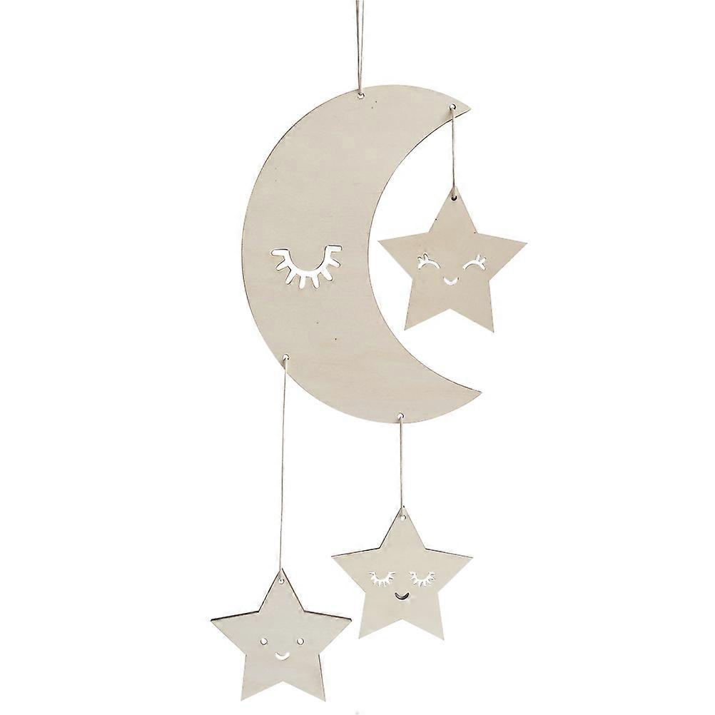 Eyelashes Moon Stars Design Ornaments for Kids Room Hanging Decoration Beige Solid Wood Plywood 7.5x5 Inches