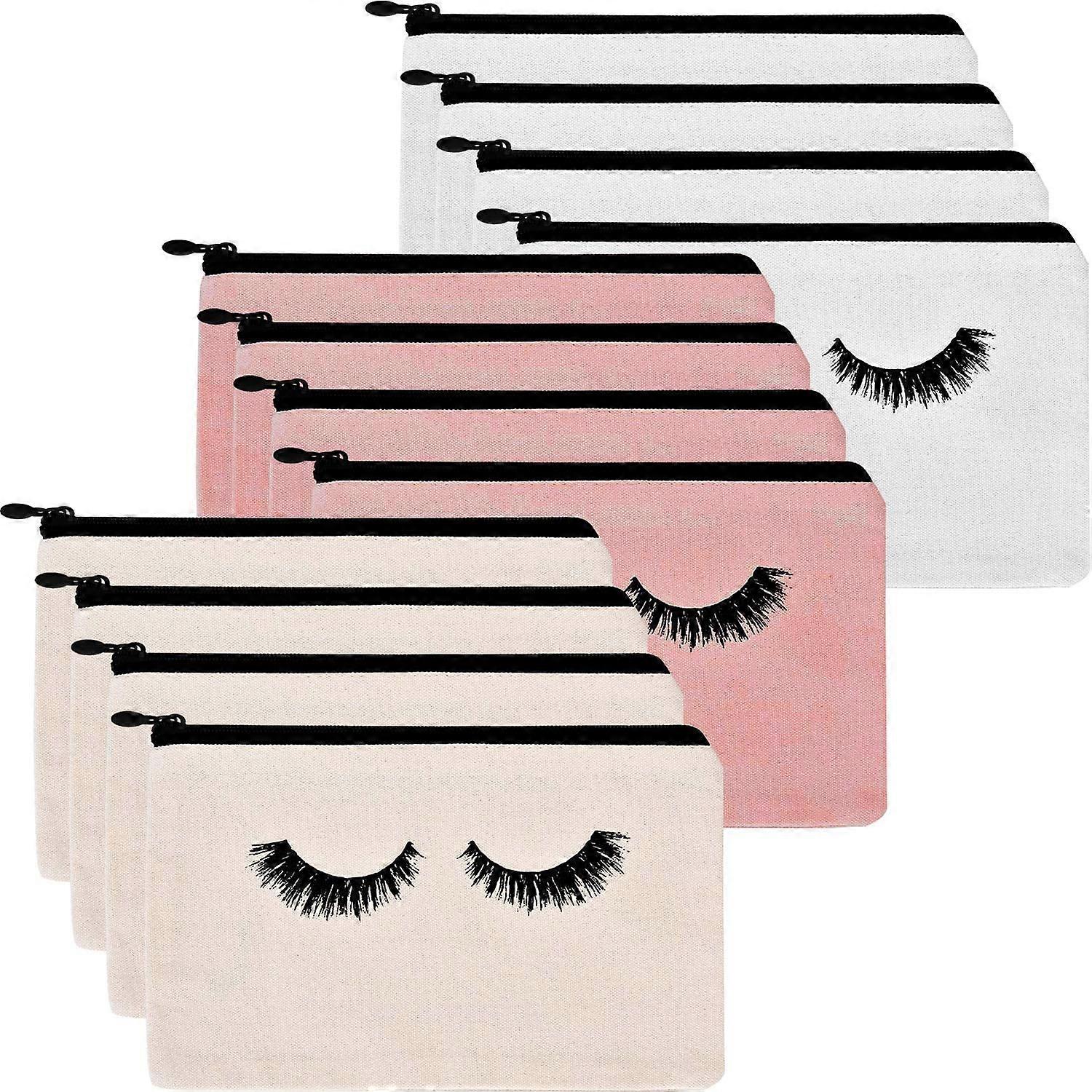 Eyelash Cosmetic Bags Makeup Bags Travel Pouches Toiletry Bag Cases with Zipper for Women Girls(12 pcs, off-white+pink)