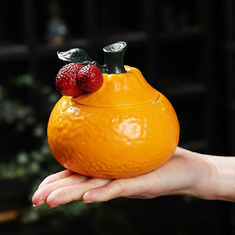 Tangerine (with cover) Creative Fruit Ashtray Ugly Orange Ceramic Persimmon Home Tea Table Windproof Belt Cover Anti Fly Ash Great Luck with Lid (Asht