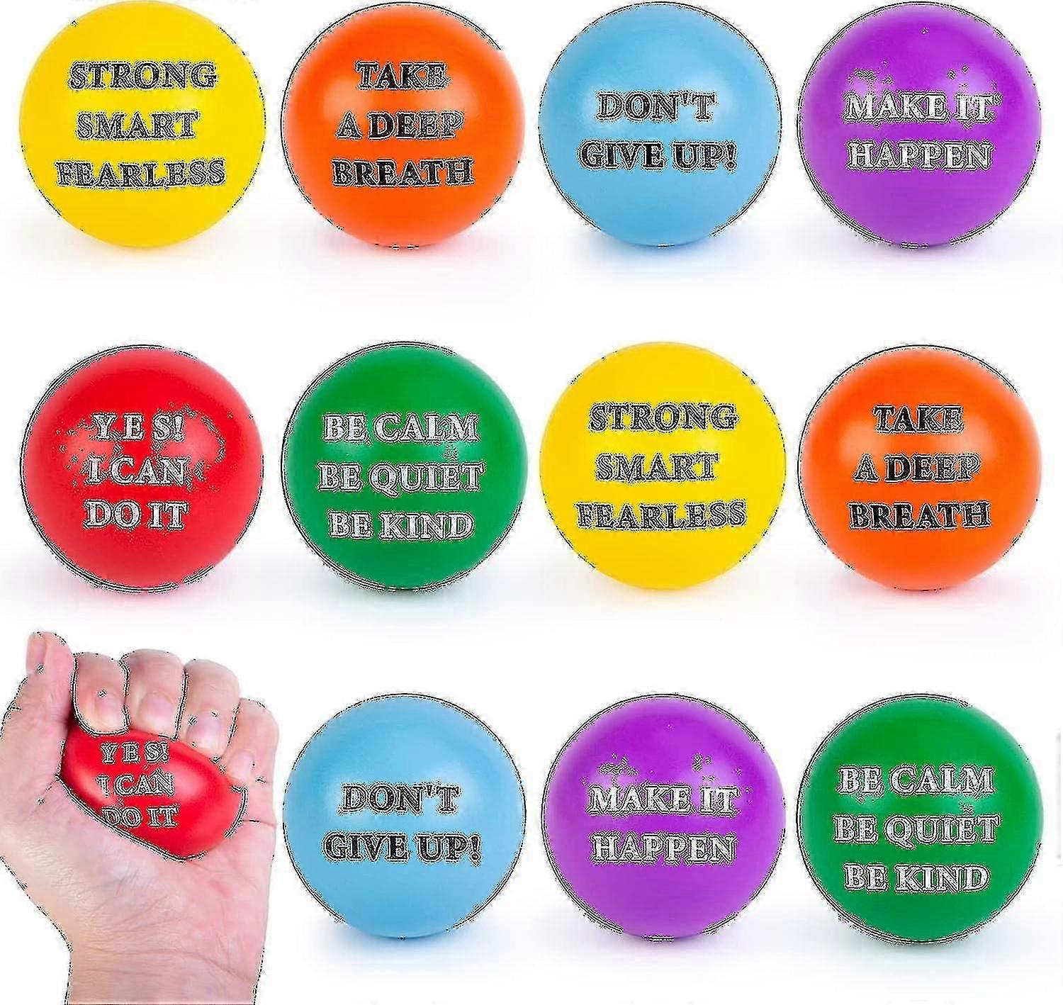 Motivational Stress Balls, 12pcs Inspirational Stress 2 Inch Foam With Positive Quetos For Kids And Adults Stress Relief Hand Exercise