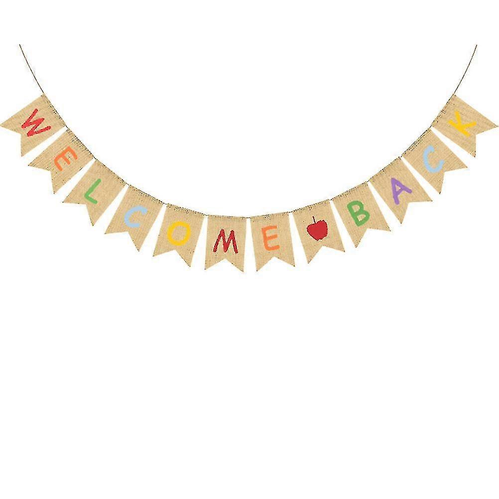 Welcome Back Linen Banner School Bunting Swallowtail Shaped Flag Garland Party Decoration Favor