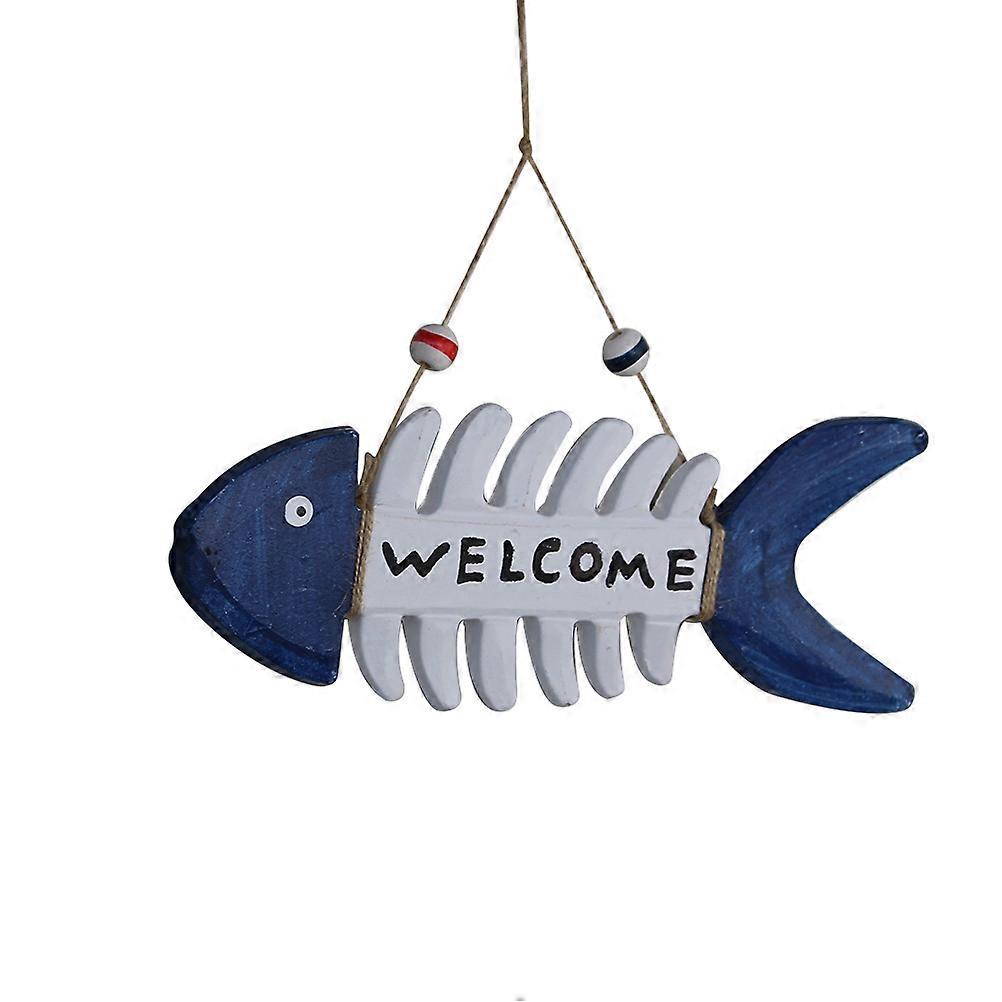 Welcome Wooden Fish Skeleton Hanging Mediterranean Style Natical Wall Decor Blue Handmade Uniqueness