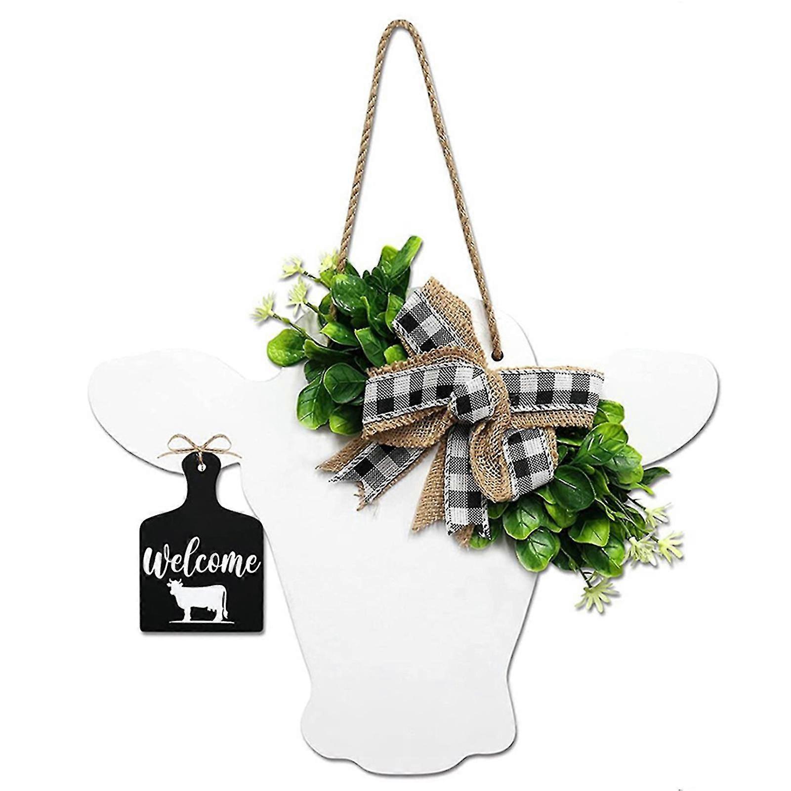 Welcome Farmhouse Cow Wreath Farmhouse Door Sign Rustic Wooden Calf Wall Sign