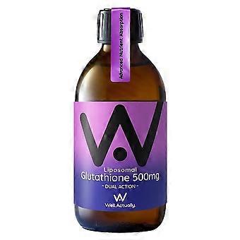 Experience superior antioxidant support with Well Actually's Liposomal Reduced L-Glutathione, expertly formulated to deliver 500mg of clinically proven Setria® Reduced L-Glutathione per serving. Made in the UK to the highest GMP and BRCGS standards, this advanced supplement harnesses the power of a unique dual-action formula that combines Glutathione with Selenium and Vitamin B6 (in its active form, P5P) to optimize your body's natural detoxification and antioxidant defence systems. Glutathione is widely regarded as the body's master antioxidant, present in nearly every cell and essential for maintaining overall cellular health. As we age, natural glutathione levels decline, making supplementation increasingly important. Our liposomal delivery system encapsulates glutathione within sunflower lecithin-derived phospholipid microbubbles, mimicking the structure of cell membranes to dramatically enhance absorption and cellular uptake compared to traditional tablets or capsules. This 250ml bottle provides 25 to 50 convenient servings, each delivering 250-500mg of potent glutathione with a pleasant blueberry flavour and substantially reduced sulfur odour. Take it straight from the spoon or mix into your favourite beverage for an easy, enjoyable daily boost to your antioxidant defence. Key Benefits: Clinically proven Setria® Reduced L-Glutathione (500mg) for effective antioxidant support Enhanced absorption via advanced liposomal delivery technology Dual-action formula with essential Selenium (55mcg) and active Vitamin B6 (2mg) to support glutathione synthesis and activity Up to 50 servings per bottle with flexible dosing options Natural blueberry flavour with reduced sulfur odour for pleasant taste Free from artificial preservatives, colours, flavours, sweeteners, soy, gluten, alcohol, and sugar Non-GMO, vegan & vegetarian friendly Produced in eco-conscious packaging Usage Instructions: Depending on age, diet, and lifestyle, take 5-10 ml (1 to 2 teaspoons) daily, providing 250-500mg of glutathione. Consume directly from the spoon or mix with water or juice to suit your taste preferences. Why Choose Well Actually Liposomal Glutathione? Our patented fermentation process yields one of the purest and safest glutathione sources available. Combined with expertly balanced cofactors and cutting-edge liposomal technology, this product ensures maximum bioavailability and efficacy. Support your body's natural antioxidant defence, promote detoxification, and help maintain cellular health with Well Actually's premium glutathione supplement.