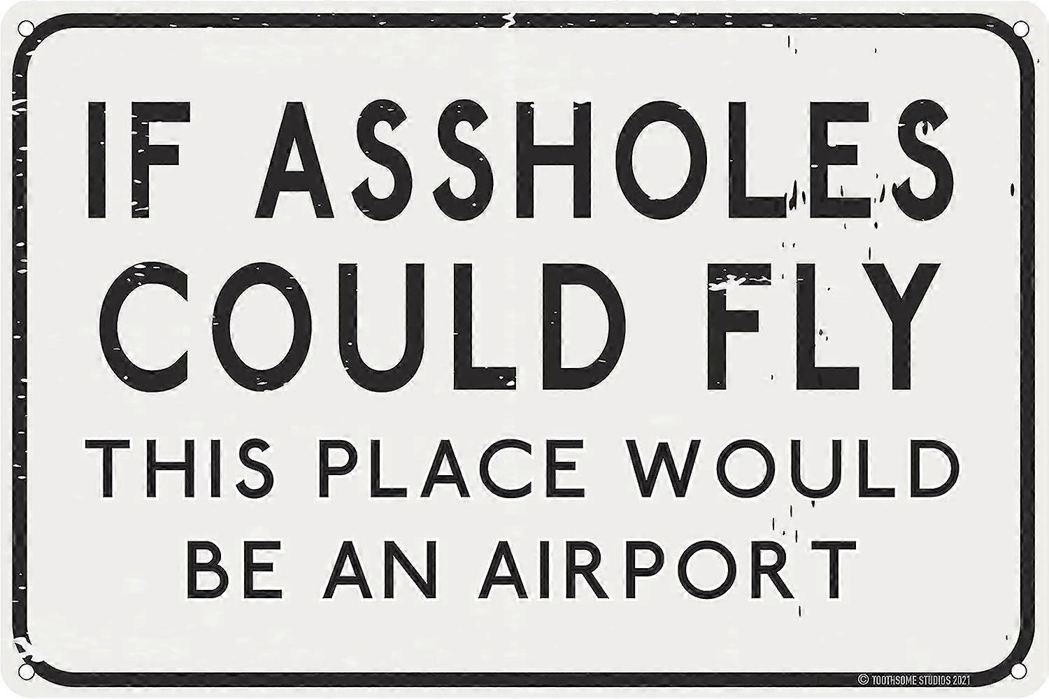 If Assholes Could Fly This Place Would Be An Airport 12" x 8" Funny Tin Sign Man Cave Garage Home Bar Decor