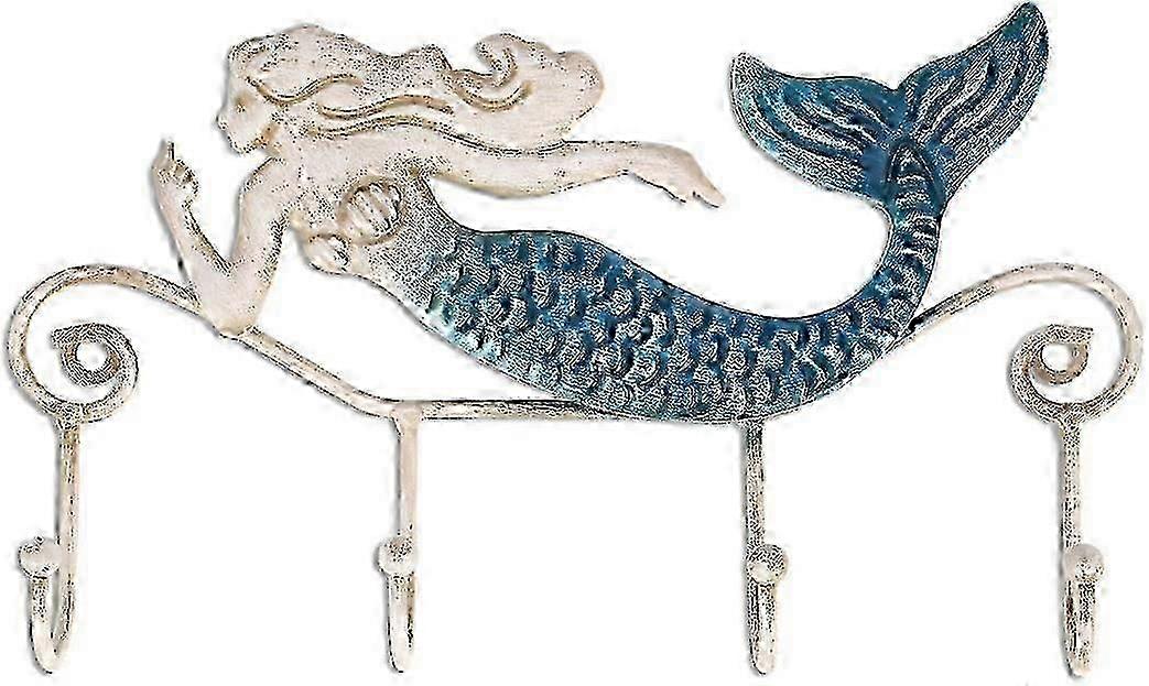 Iron Wall Hanger Hook 4 Hooks Decorative Wall Rack (Mermaid)
