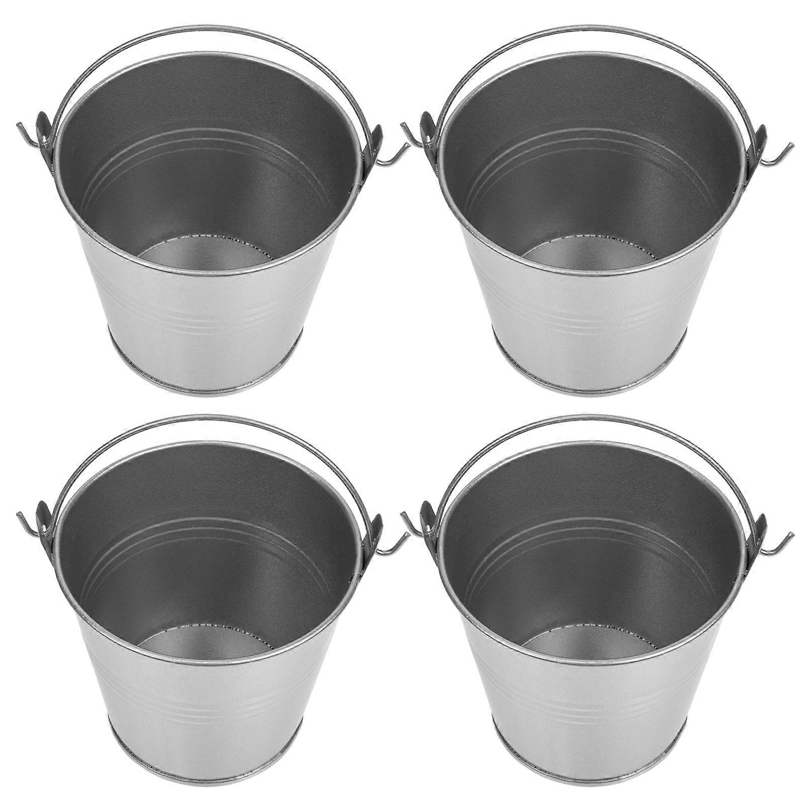 Iron Crafts Bucket 4Pcs Small Iron Buckets For Home Storage And Decoration Grey Color Vintage Finish 5.7X7X8Cm