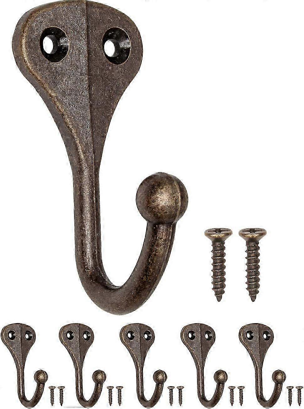 Set of 5 Iron Coat Hooks Coat Hooks Coat Hooks Coat Hooks Brass Bronze Wall Hooks Vintage Retro Country House Style 62 x 31 mm--