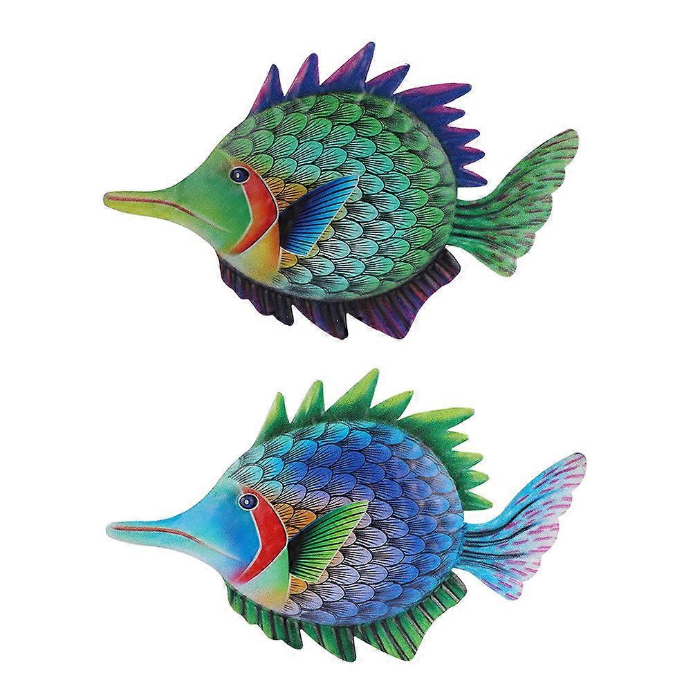 Iron Fish Wall Art Ornament 2PCS Premium Hanging Ocean Themed Decoration, Realistic Design with Vibrant Green and Blue Colors for Room Decor