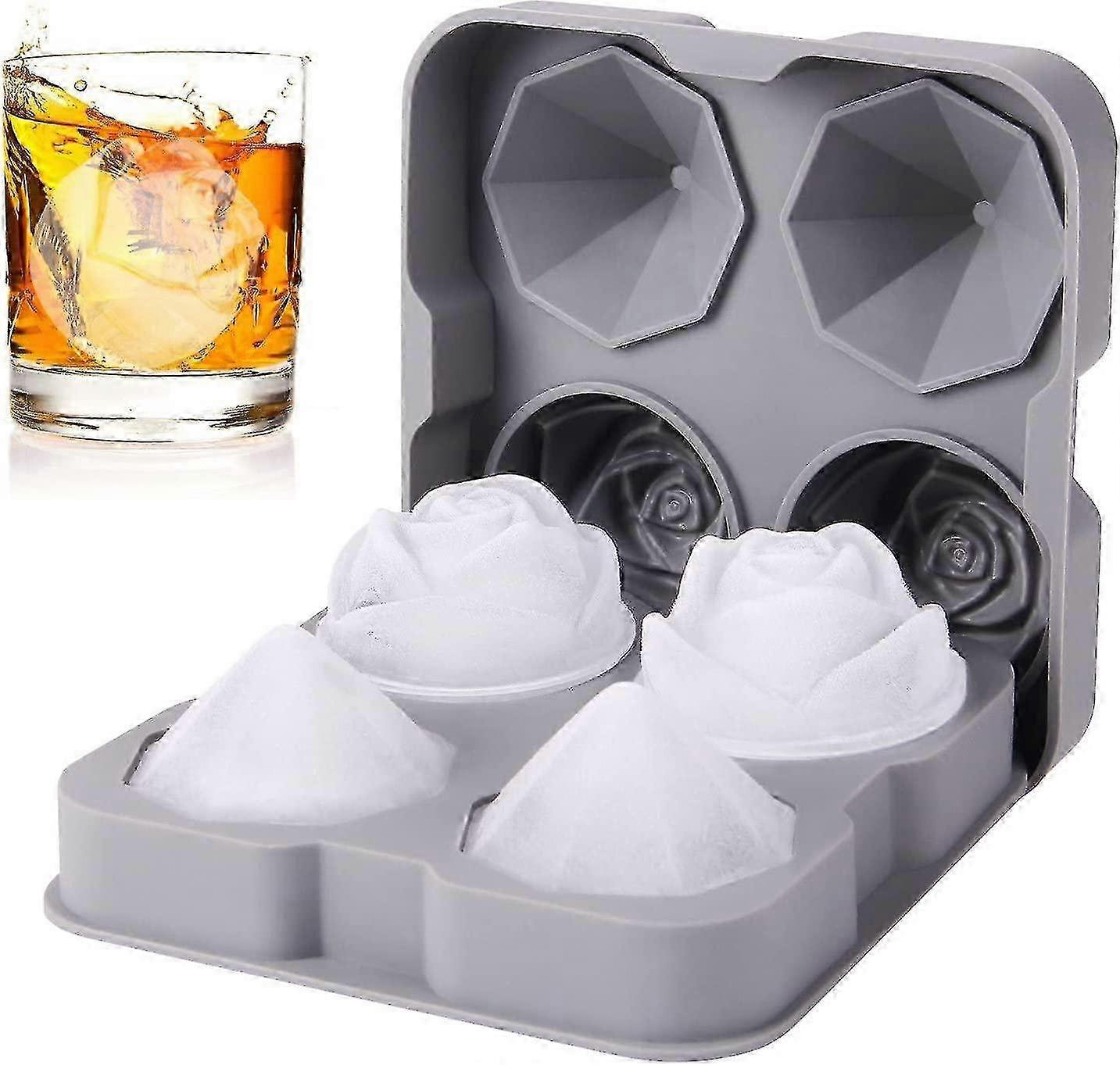 Ice Cube Tray,2 Silicone Rose Ice Tray & 2 Diamond Ice Ball Maker,2.5inch Ice Cube Molds Includes Fu--