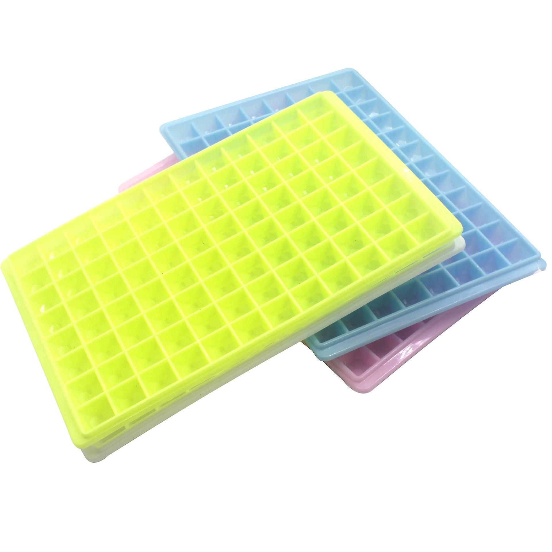 Plastic: PP Material: Plastic Soft lattice Stronger & Safety: Made of premiummaterial. Bpa-free and pass food-grade LFGB certification Ice tray sets use better materials and designs to make the ice trays stronger and more durable. They can withstand long-term low-temperature storage without breaking. No longer worry about breaking easily. Stop wasting your money Start to use our ice trays and say goodbye to those cheap disposable ice trays Easy Ice Removal: The bottom wider design, which makes it easy to release ice cubes and the material will not break after freezing for a long time. Each flat cube compartment is separate from others so you can easily push from the bottom. No need for awkward bending or twisting, removing the ice cube isn't a tough job anymore Easy to Use & Dishwasher Safe: Fill the trays with water, and then slip the trays into the freezer. Besides water, you can fill the ice cube trays silicone with fruits, ice cream, soda, cocktail, whisky, vodka, ice coffee, and wine to customize your favorite flavor. And you can simply put them into your dishwasher after use. Muti-Colors & Good Customer Service: Designed with wonderful colors to bring a more pleasant ice-making and ice drinks experience Silicone ice cube tray kits are great for home, parties, bars, gifts, etc.