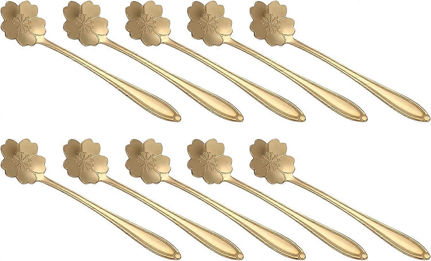 Stainless Steel Tea Spoon Stirring Spoon Mixing Spoon Flower Spoon Ice Tea Spoon Dessert Spoon for Iced Tea, Coffee, Cocktail, Milkshake (gold10pcs)