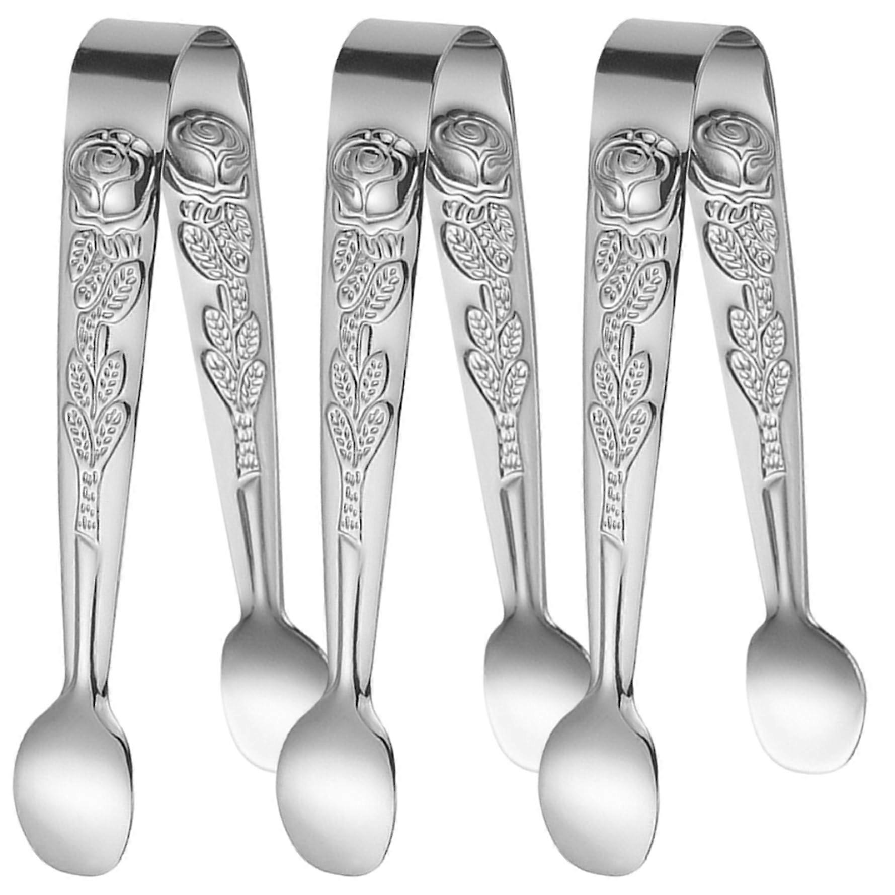 Tongs for ice bucket 3pcs 4 inch stainless steel mini pond tongs with rose carvings for bar, salad, appetizer, dessert