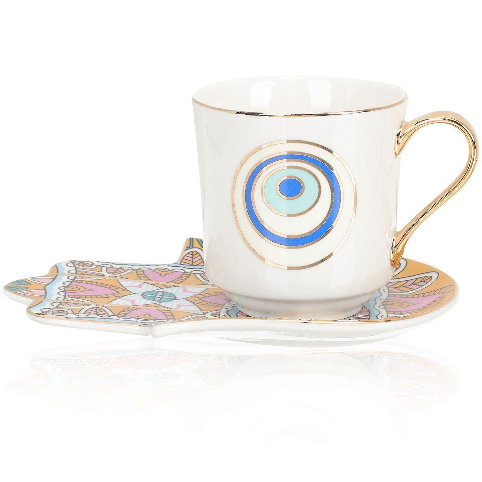 1 set of Eye Pattern Coffee Cup Decorative Milk Cup Office Tea Cup with Saucer