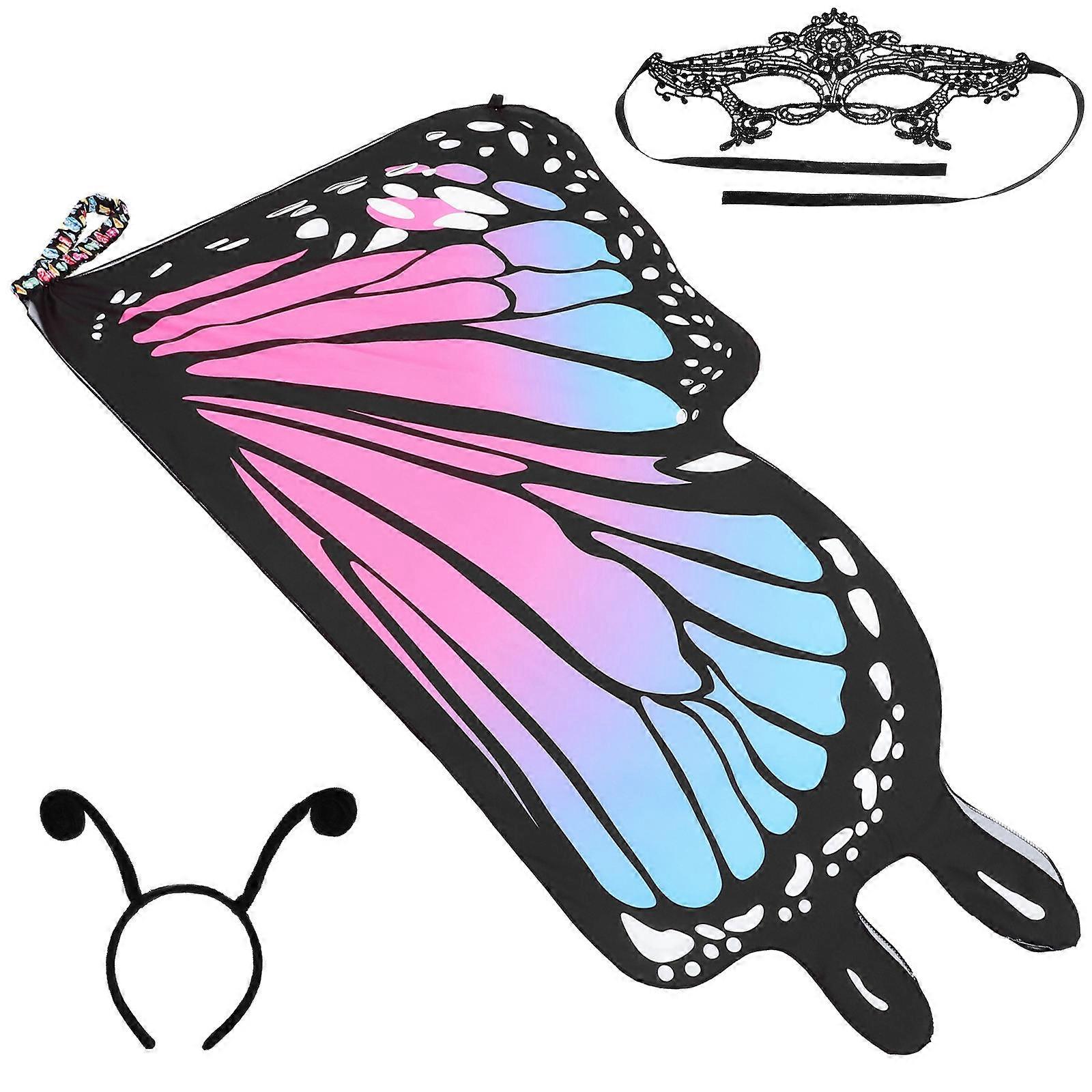 Butterfly Wings Shawl Cape with Eye Mask and Headband – Vivid Print Costume Accessory for Dress Up, Festival, Belly Dance, and Fairy Outfits