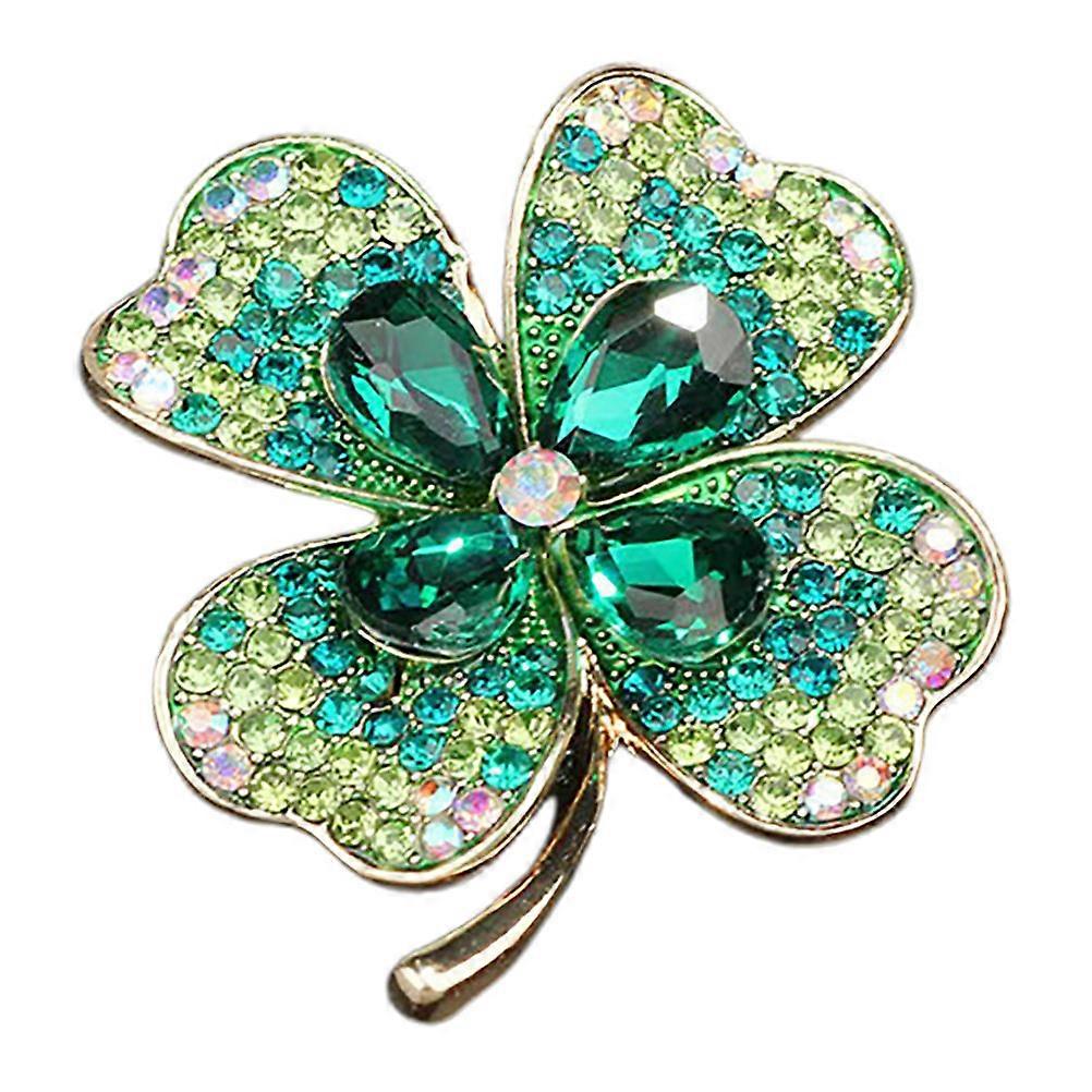 Irish Brooch Shamrock Jewelry Elegant Design For Jackets Bags Lapel 4.00X3.50X2.00CM Alloy Rhinestone Symbol Of Luck 1Pack