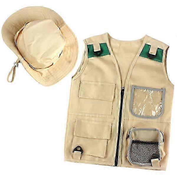 Outdoor kit, khaki vest and hat for young children Comfortable and durable explorer costume