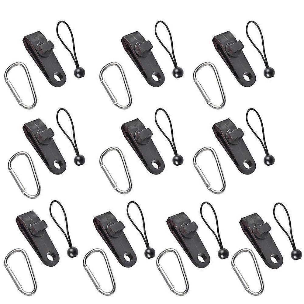 Outdoor Camping Windproof Canopy Fixed Tent Clip Rope Buckle Quick Hanging Set 10 Clips+10 Black Ropes+10 Silver Fast Hangings