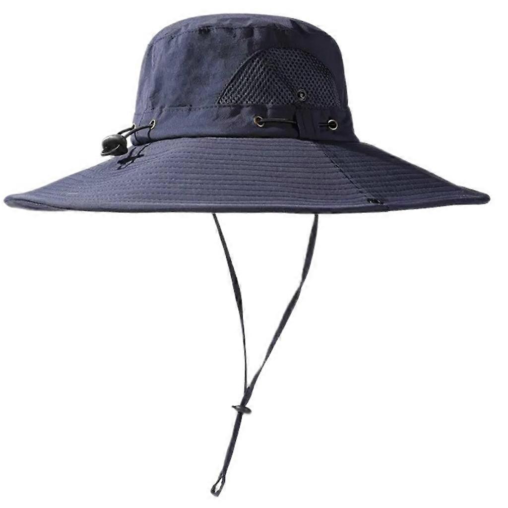 Outdoor Sport Hiking Fisherman Hat Sunshade Wide Brimmed Cover Breathable Sun Hat Drawstring Bucket Hat Navy blue