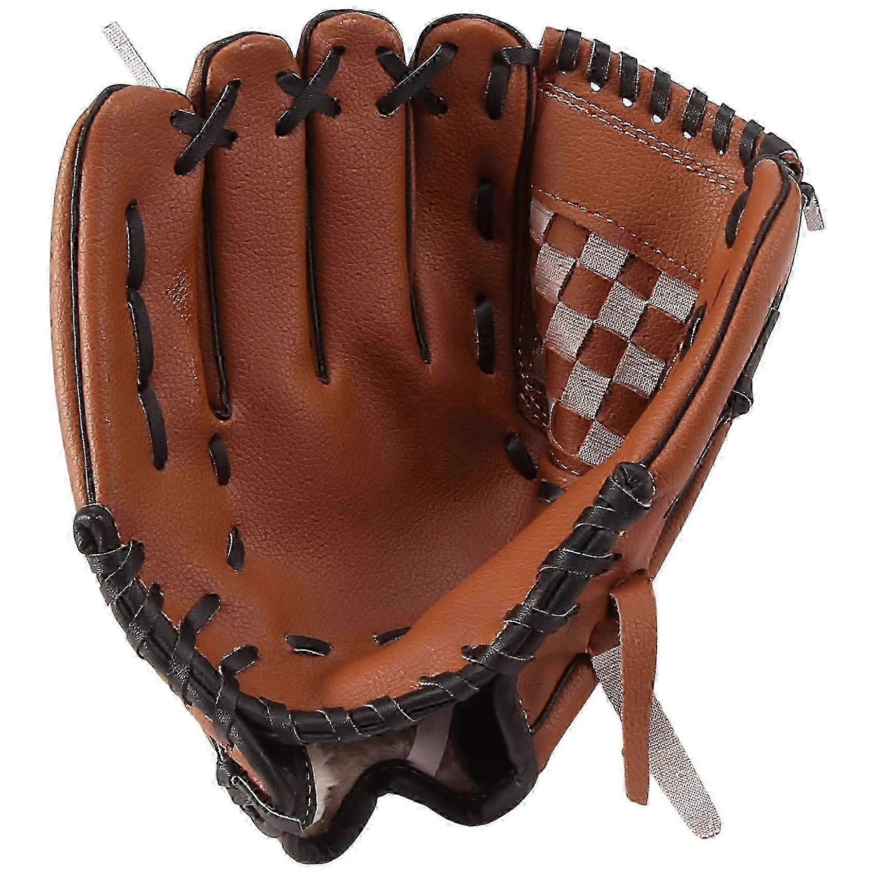 Padded La Palma pad can reduce impact Extra-deep pockets with flexible action heels for secure capture Padded with soft faux fur lining, more comfortable to wear Adjustable binding strap ensures stable use Fit for the Right hand This perfect product cannot be missed if you are a baseball lover. It is suitable for both men and women, individual finger separations and tight laces provide a stable application effect. Great workmanship and design with 3 Size and 2 colors to meet your needs. A good choice ! Applicable people: woman, man size:10.5inch Material:PU colour:Brown Package Contents: 1 x Baseball Glove(Product does not contain baseball) Only the above package content, other products are not included. Note: Light and different displays may cause the color of the item in the picture a little different from the real thing. The measurement allowed error is +/- 1-3cm.