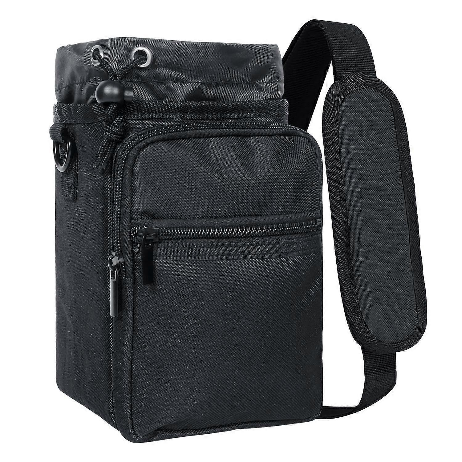 Outdoor Travel Portable Insulated Cooler Water Bottle Bag 1. Material: 900D polyester outer layer + 300D interior with open neoprene 2. Designed for severe cold conditions 3. Compatible with 40-ounce bottles, ensuring your water bottle is always with you 4. Two front pockets can accommodate 6- and 7-inch phones, and the zipper keeps your belongings securely inside the bag 5. The drawstring allows for easy access to and from your water bottle while preventing it from falling 6. Two carry options: hand carry or shoulder carry 7. Dimensions: 12.5 x 13.5 x 25 cm 8. Note: only the water bottle bag, not other items