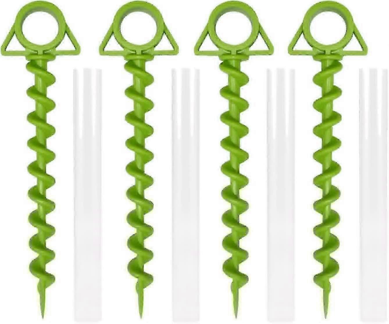 Outdoor Beach Camping Tent Spiral Plastic Spikes (Green) 4 Pieces