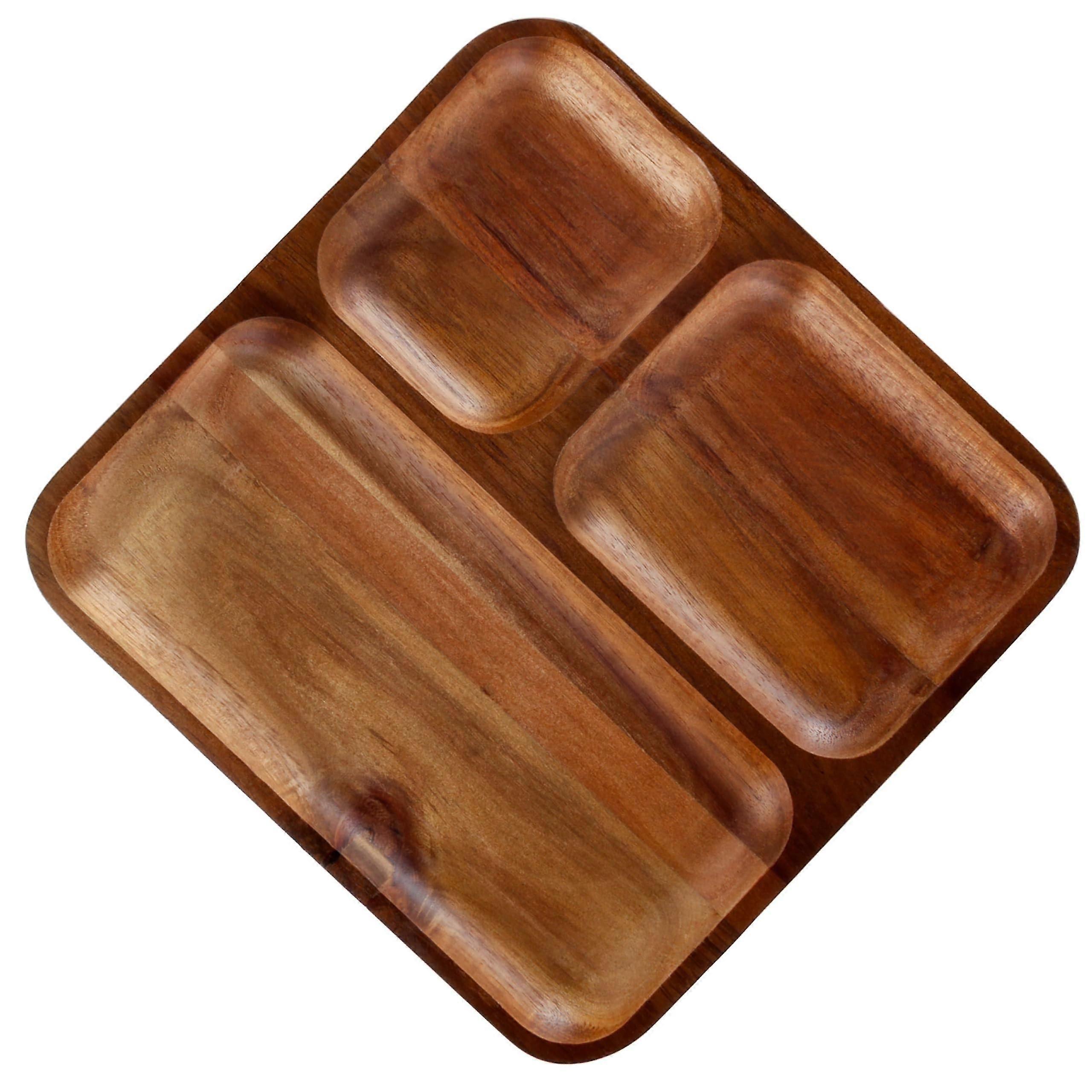 Acacia Wood Serving Tray 10"x10"x1", Durable Pre-Seasoned Snack and Cheese Platter, Reusable Brown Fruit and Veggie Tray
