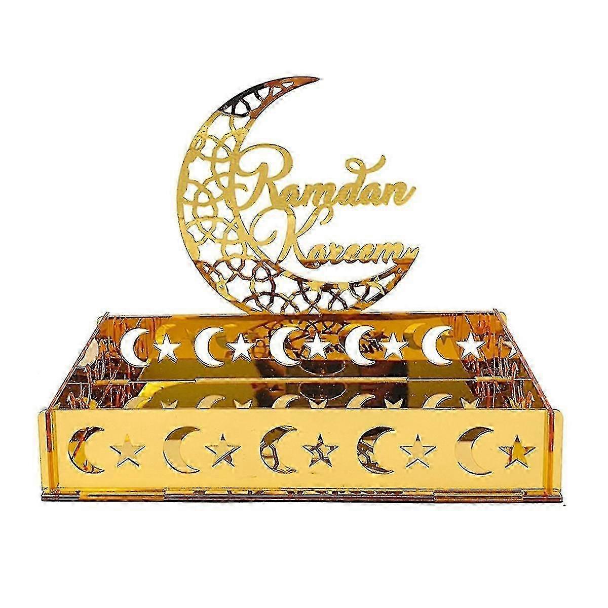 Acrylic Eid Mubarak Food Tray Ramadan Kareem Dessert Fruit Plate Moon Star Castle Islamic Muslim Fe