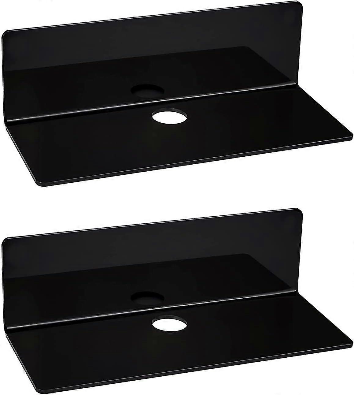 Acrylic Wall Shelf Self-Adhesive Small Display Shelf Adhesive Shelf Black Floating No-Drill Shelf for Living Room Kitchen Bedroom Storage (Black) (2pc