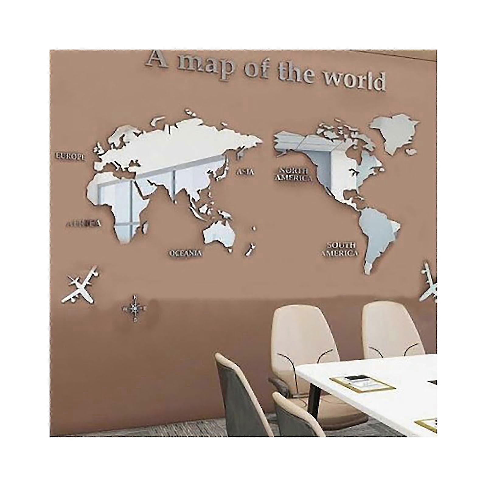 Acrylic Wall Stickers 3D World Map Wall Mirror Sticker for Office Study Living Room Bedroom Silver