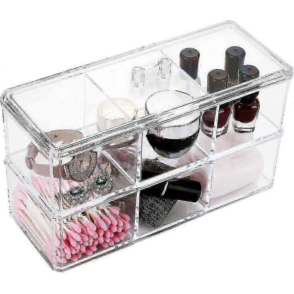 Clear and Durable Acrylic - Made of premium and thick acrylic, well-known for its transparency, durability and strong, resistance to breakage,Easily cleaned with soap and water, lasting as new.Transparent appearance,nice looking and easy to see colors through the acrylic, making it easy to pick the color you want Double layer - This acrylic box is double layer design,two layers can be assemble or disassemble freely.with a lip can for prevent dust or product your items from getting wet,very convenient for use Stackable Design -You Also can buy two or more acrylic box stack them together.You have the option of placing them at various points around your home or stacking them to make the best use of your space and create more room in your space Multipurpose Organizer Tray - Our intended for bathroom cotton swabs, Q-tips, make up pads, cosmetics and more,It is extremely versatile and also can be used to store school supplies, office supplies, household tools,kitchen items and other small collections.This practical acrylic storage box is also a great gift for family or friends in any gift giving occasion Product Infos- Size(LxWxH) : 9.05"x 3.54"x 5.31"; Ccompact design makes it easy to fit in those everyday spaces, like inside a medicine cabinet or a drawer, or on a small counter space. Package included 1 x Double-deck Acrylic Box (Accessories are not included)
