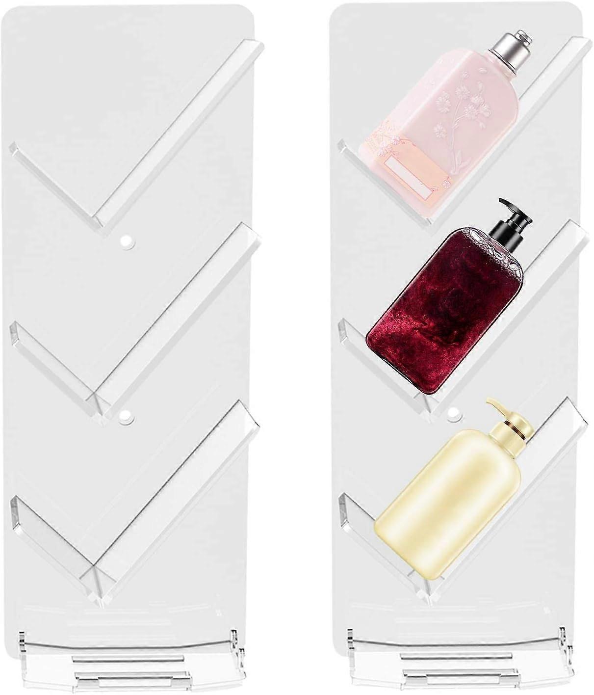 Widely ApplicableThis is an Acrylic Shower Shelf that plays a good role in the organization, and the 6 inclined card slots can be used to place shampoo bottles, body wash, etc. The bottom space can be used to place or towels, and toothbrushes