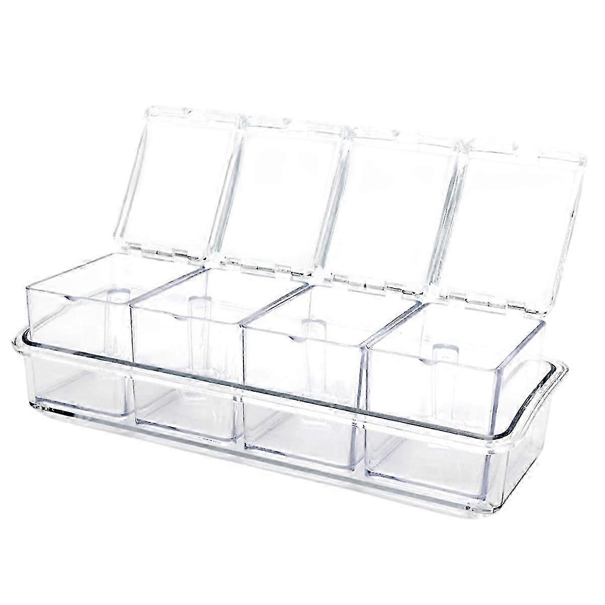 Acrylic Spice Box Set, 4-Piece Kitchen Storage Containers with Lids & Spoon, Salt Pepper Sugar Organizer