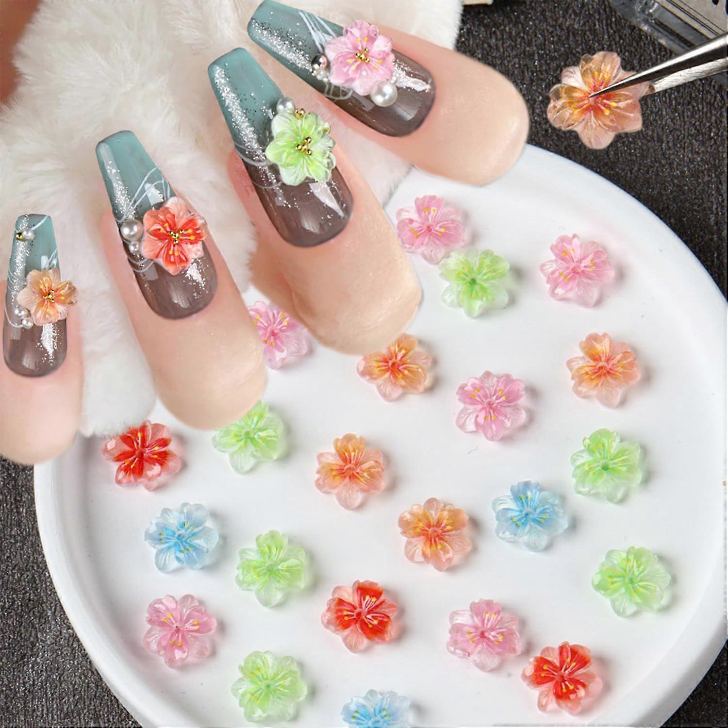 50 Pcs 3D Flowers Charms for Acrylic Nail Colorful Gradient Floral Nail Charms