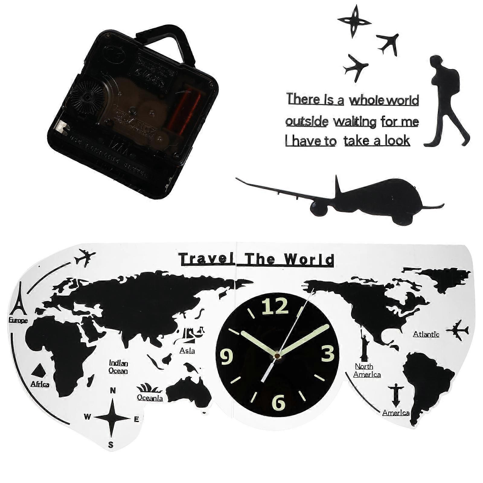 Acrylic Map Wall Clock Unique Hanging Art Craft Design for Home Decor, Office, Living Room, Kitchen Night Glow Feature, Battery Not Included
