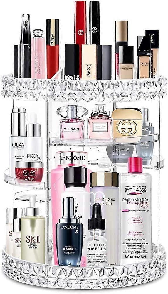 Acrylic Makeup Organizer, Cosmetic Storage and Vanity Perfume Organizers in Countertop Bathroom Dresser, 360 Rotating Makeup Holder Stand for Beauty C