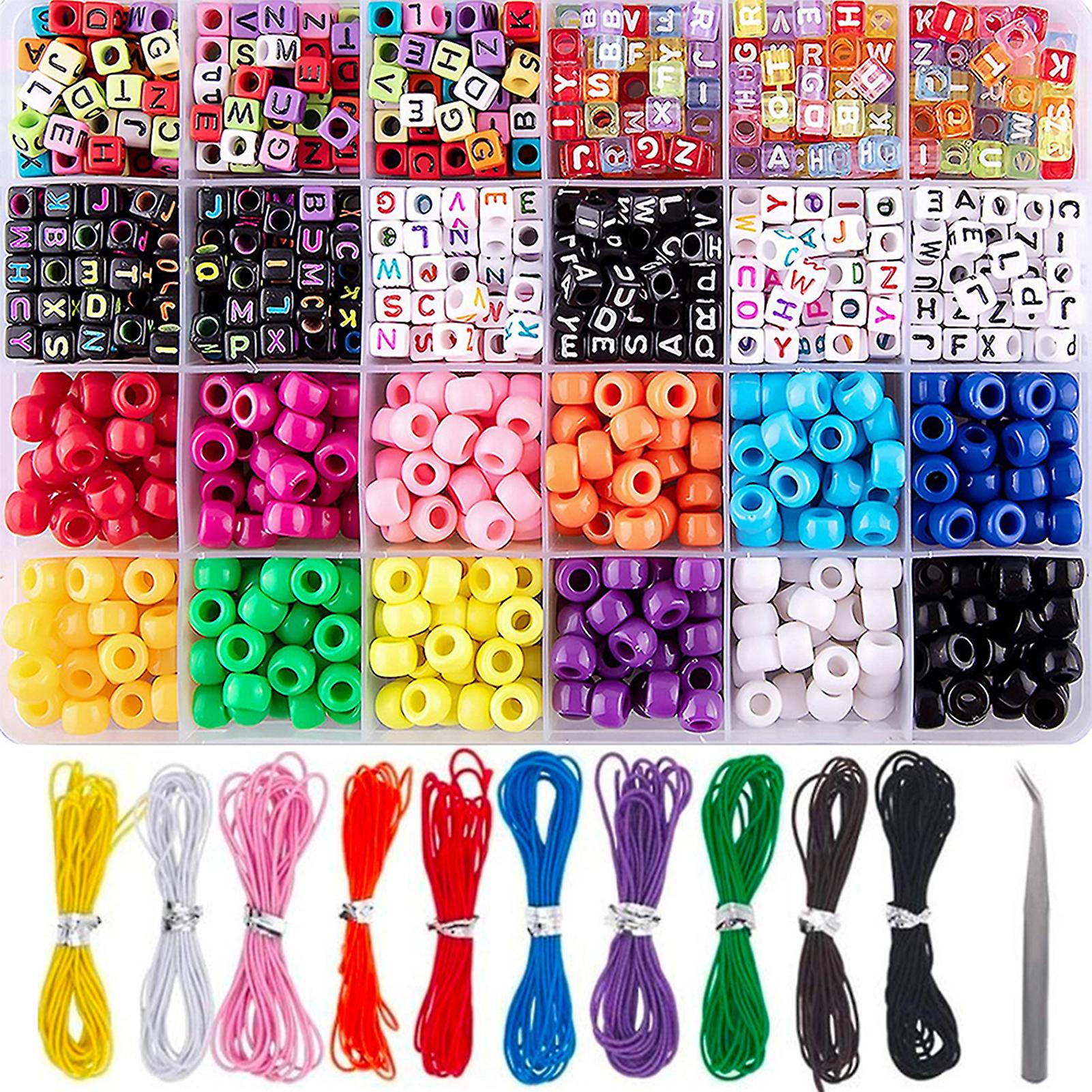 Acrylic Letter Beads DIY Set DIY Beaded Bracelets Making Accessories with Elastic Rope Tweezer