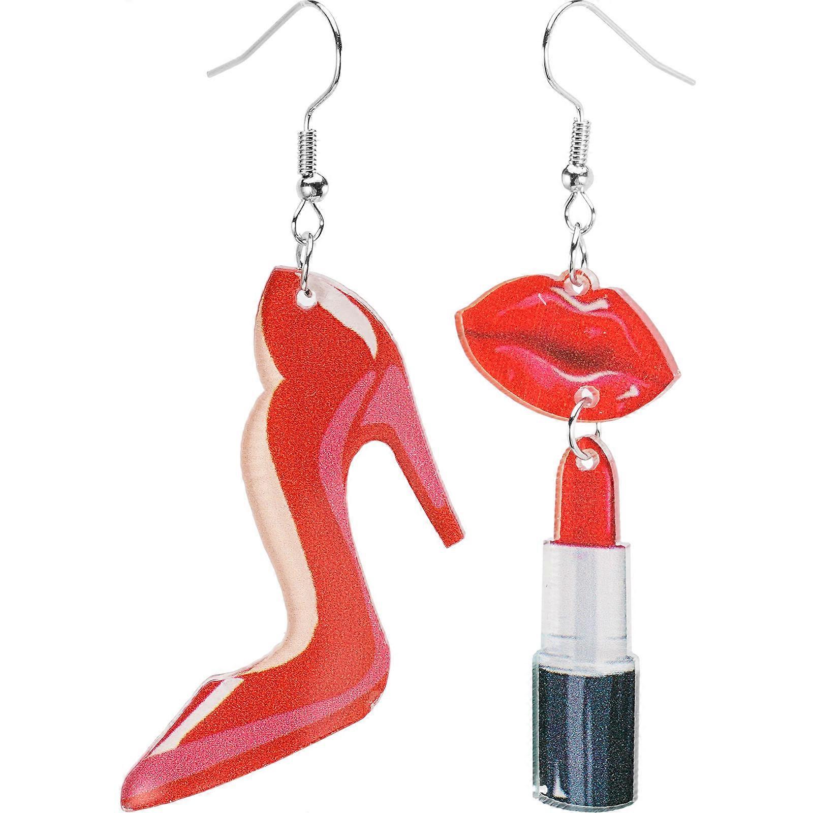 Acrylic Red Lipstick High Heel Dangle Hook Earrings for Women, Lightweight Statement Jewelry, Durable & Non Irritating Design