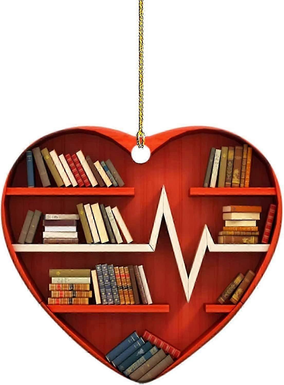 Acrylic Hanging Ornament, Book Lover Heart Ornament, Gift For Her Librarian Book Ornament Lover Bookworm