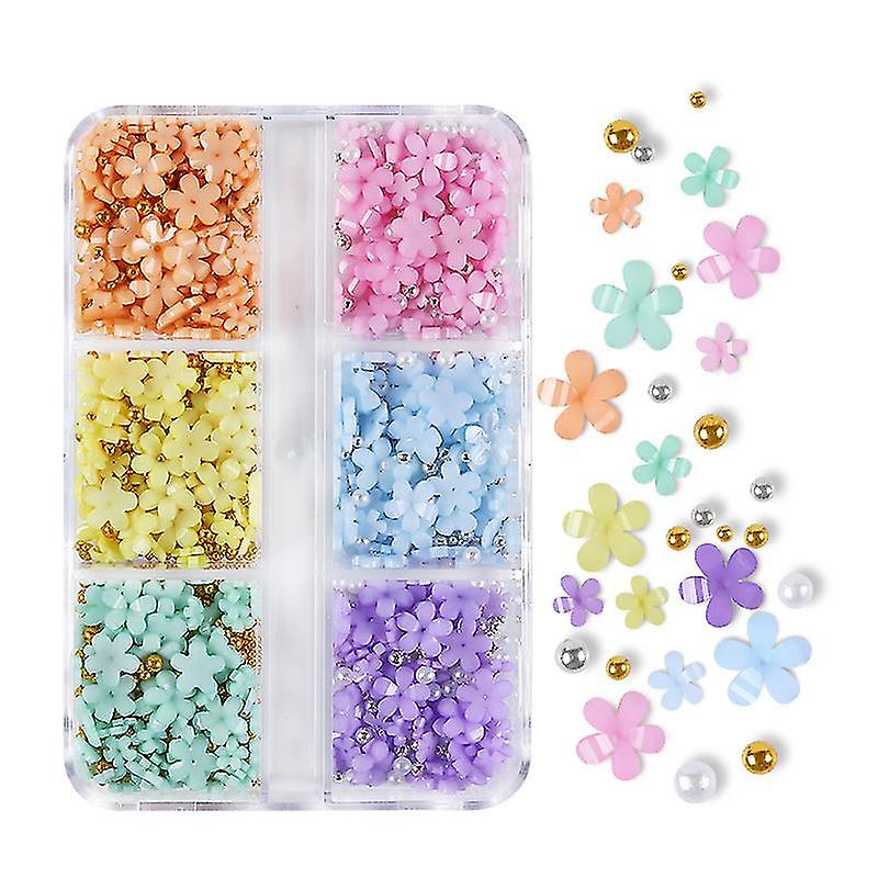 400pcs Nail Charms For Acrylic Nails 3d Acrylic Flower For Nails, With Gold And Silver Beads For Nail Art Accessories Diy