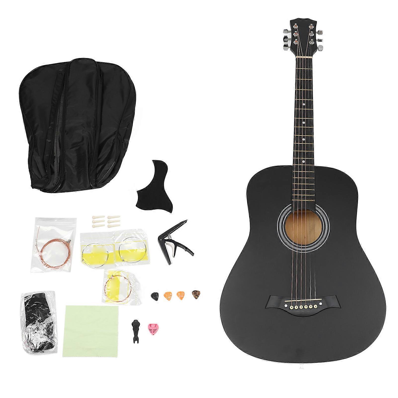 Acoustic Guitar Kit 38 Inch Black Matte Rounded Folk Guitar with Spare Strings Capo Picks Guard Plate Carrying Case