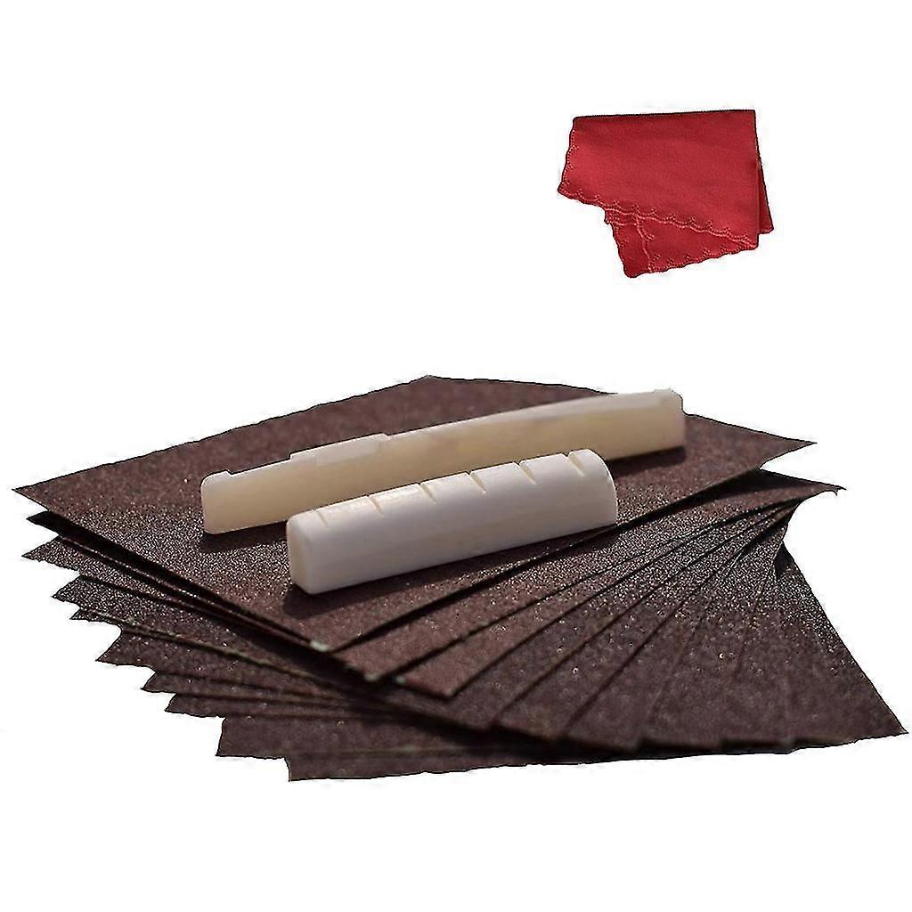 Acoustic Guitar Buffalo Bone Bridge Saddle Nut Kits Sand Paper Clean Cloth