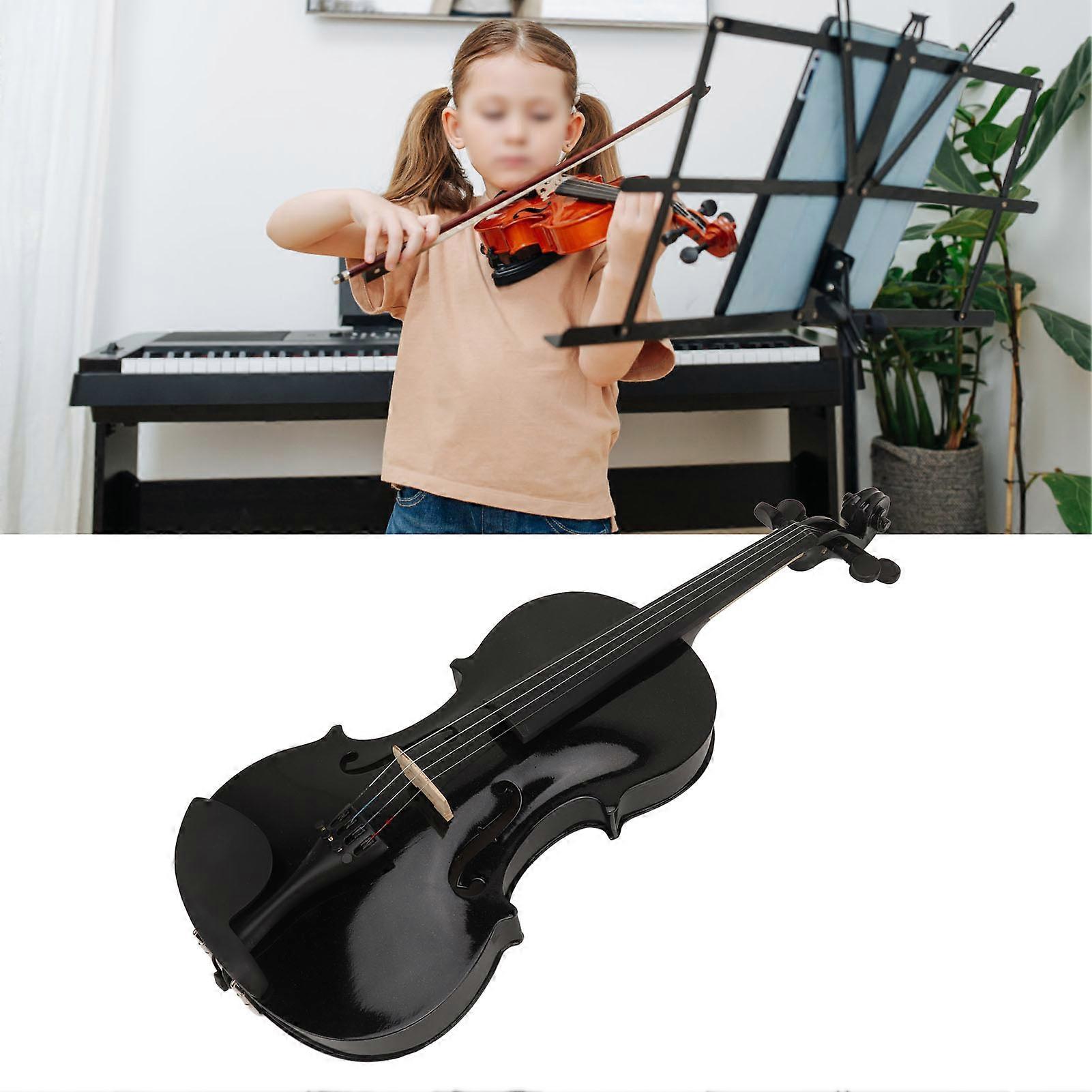 Acoustic Violin 4/4 Kids Adults Beginners Starter Kit with Box Rosin Shoulder Rest Mixer String Bow Fingerboard Sticker Black