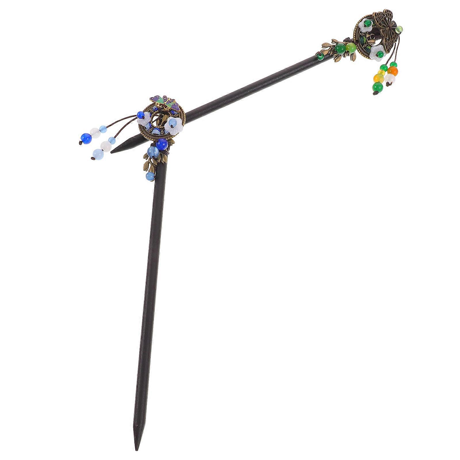 Asian Style Hair Sticks Hair Pin Stick Hair Accessories Wood Metal Assorted Color for Hair Decoration 2Pcs