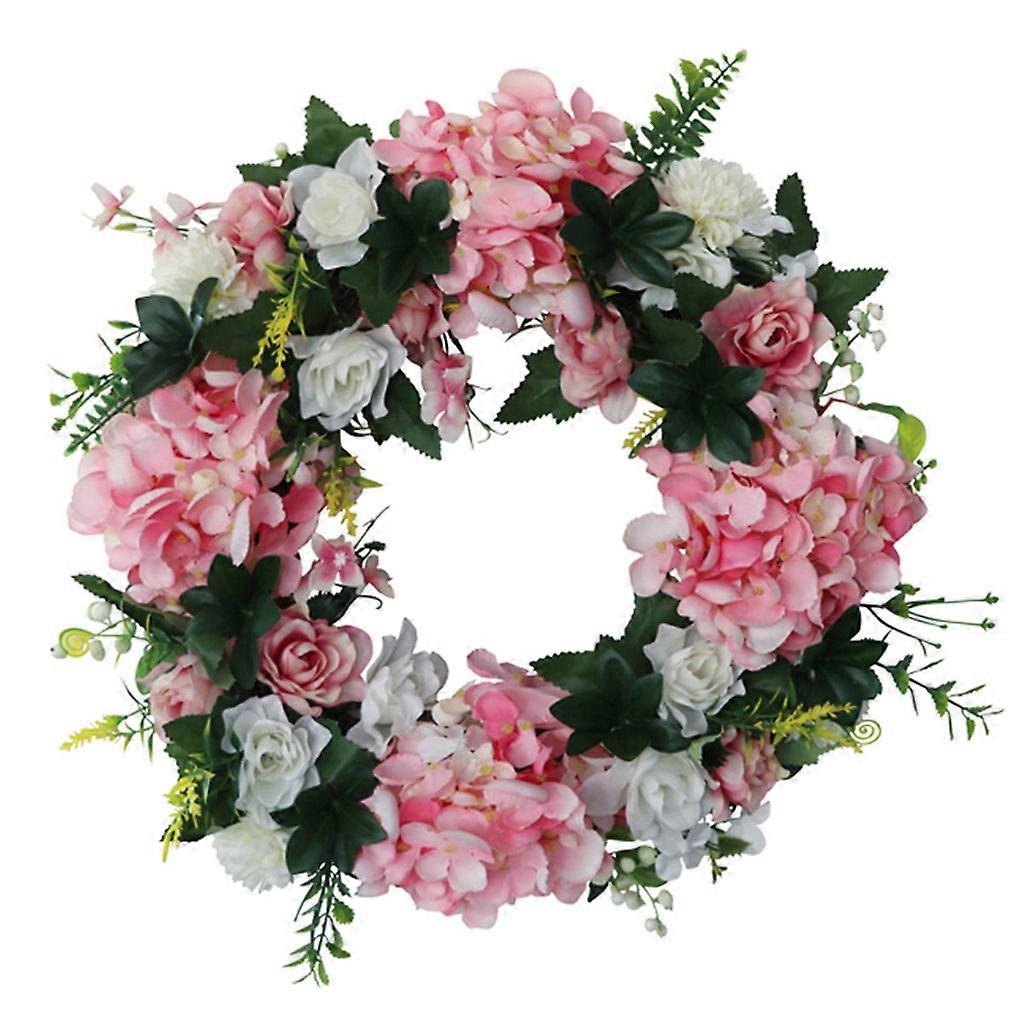 Hydrangea Wreaths Artificial Flower for Front Door Outdoor Spring Summer Wreaths Pink